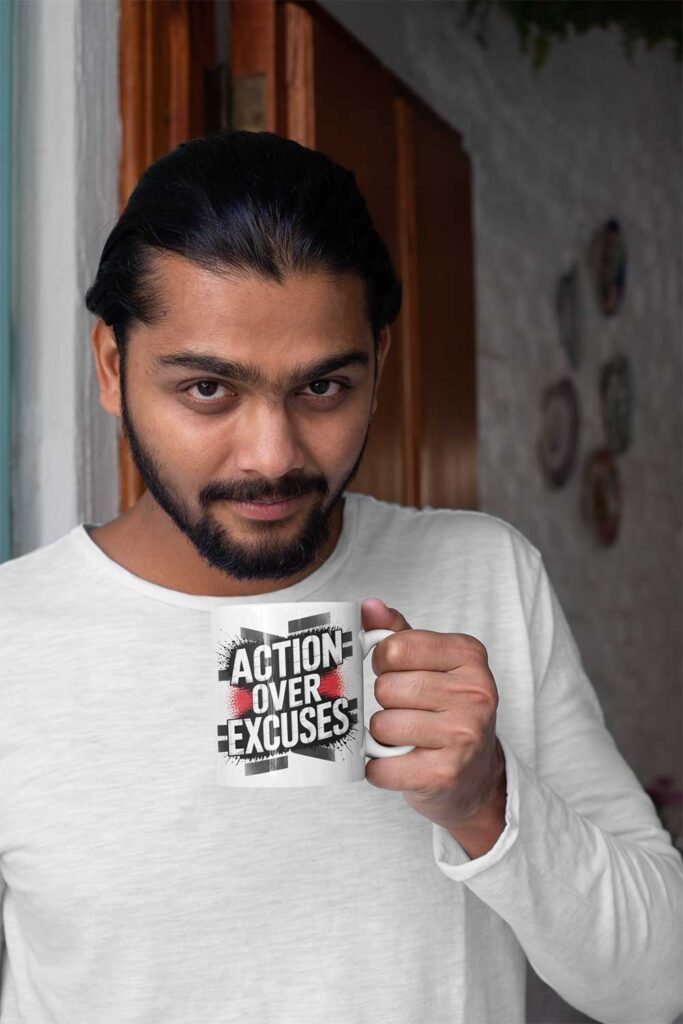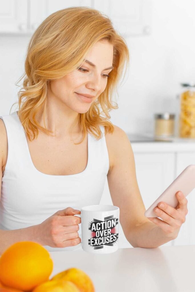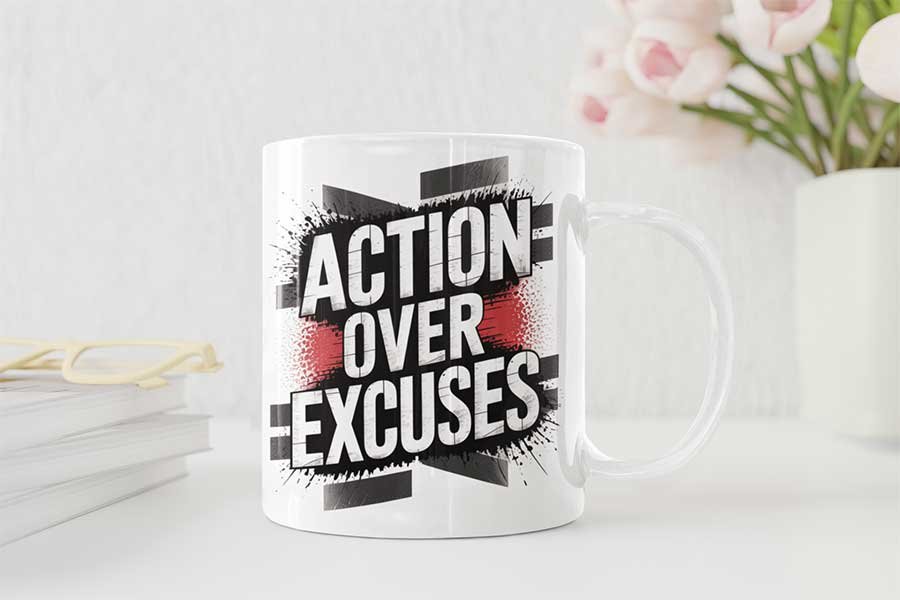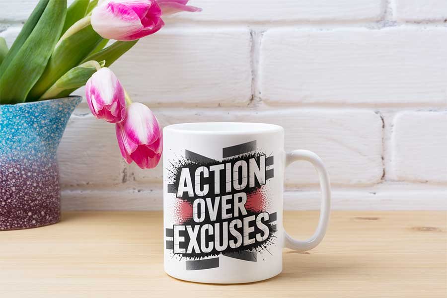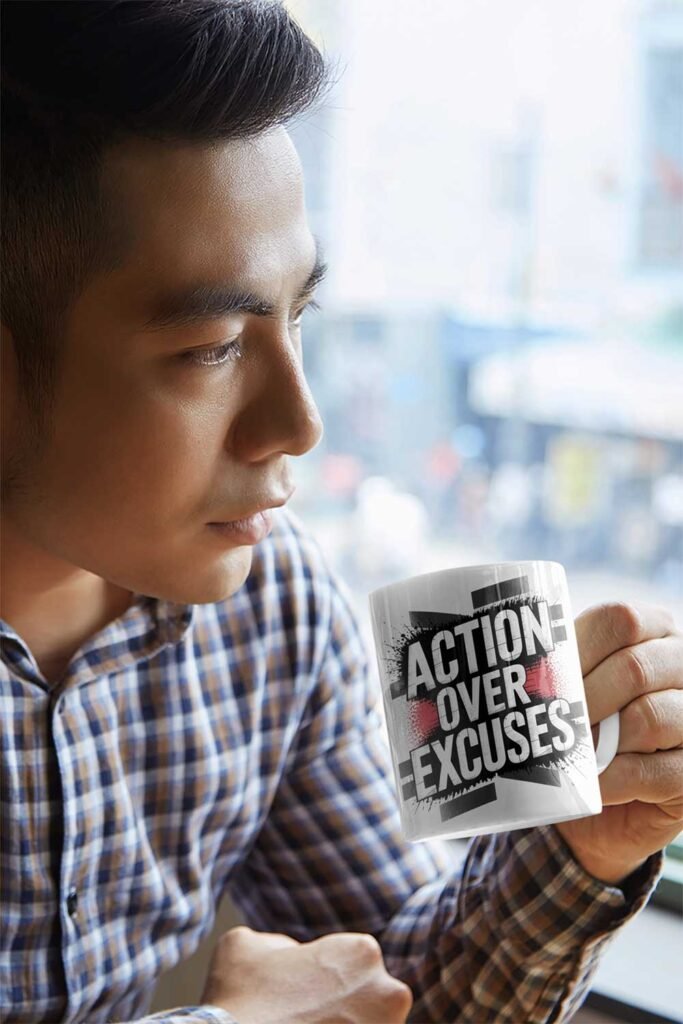 Every day offers a choice: move closer to the life you want or stay exactly where you are. The “Action Over Excuses”mug was created for the people who are ready to choose progress, even on the days that feel heavy. It’s a simple phrase with life-changing power — a reminder that excuses may feel comfortable in the moment, but action is what builds confidence, momentum, and long-term success. With every sip, you’re reconnecting to the part of yourself that thrives when you step forward instead of holding back.